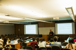 三个月的学习日程总体而言紧张而充实,十余门课程不仅涵盖美国主要的法律部门,亦涉及法律检索与法律写作等实务课程。从周一到周五每天有3小时的上课时间,半个小时的助教复习时间。同学们每天都必须完成数十页甚至上百页的阅读任务。每隔几周进行小测试,以英语论文(自主选题)和结课考试的方式对他们进行总体评估。这种高强度的授课模式让学生们感受到了深深的压力,体验到了迥异于国内的苏格拉底式授课方式,以及真正的小班教学。