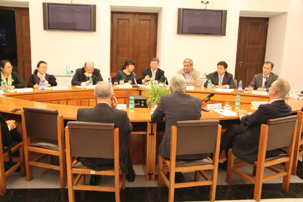 2015年9月26日,访问团与意大利宪法学、行政法学学者于罗马第三大学进行了深入而富有成效的学术会谈。意大利方面出席的有罗马第一大学SandroSchipani教授、罗马第二大学AntonioD’Atena教授、罗马第三大学GiampaoloRossi教授、GiovanniSerges教授、PaoloCarnevale教授、CarloColapietro教授、EnricoToti博士及卡拉布里亚大学Danilo Pappano教授.焦洪昌教授对中国民法典编纂中出现的宪法与民法的关系问题作了主题发言,引发意大利学者的广泛兴趣。许身健教授与谈中国司法制度的最新进展。侯淑雯教授与张劲副教授向意大利罗马第三大学已相识教授致意,感谢老朋友ROSSI教授。Rossi教授和Schipani教授在发言中对我院与罗马三大在宪法、行政法等公法领域的合作给予了高度评价。中国和意大利都是历史悠久的文明古国,中意法学界的交流肇始于25年前,由我校江平教授、杨振山教授和罗马第一大学Schipani教授在罗马法、民法领域首先展开,如今两国在公法领域的学术交流愈加深入,反映了中国社会转型时期的现实需要,具有鲜明的时代性及开拓性。本次会谈中意双方学者就公法方面的一些基础理论问题进行了深入讨论,主要包括:1.民法法典化过程中宪法的地位与作用;2.一国宪法与国际条约之间的效力关系;3.宪法的属性问题,亦即宪法应被定位为公法,还是上位于公法和私法的最基本法;4. 宪法的刚性表现;5.宪法上的自由与平等两原则在不同社会体制下的冲突与互动;6.中国及欧洲各国宪法对社会权利所持态度。最后,双方学者针对近期欧洲愈加紧张的反恐局势,在宪法和行政法层面探讨了保障国家安全与限制公民基本权利之间的矛盾及其可能的正当化应对之道。