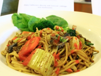 1、初到戴维斯不习惯各种牛排沙拉,唯独这份亚洲炒面诱人,一碟意面一碟蔬菜,再加点chicken or tofu,每天亚洲风味的窗口因为它都是长长的队伍~