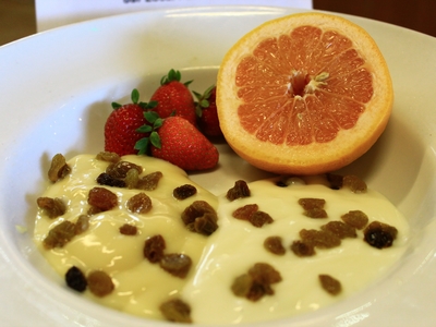 7、喜欢大果粒的孩子有福了,自制大果粒原味和草莓酸奶,黄桃椰果葡萄干,还有五彩豆巧克力豆,加上新鲜的草莓甜橙,不限量!