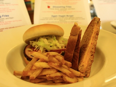 2、汉堡和薯条,松软的两片面包,夹上现烤的牛肉鸡肉,带有温度的薯条,绝对比国内KFC赞!!