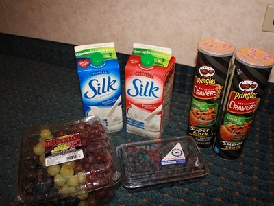 6、两个塑料盒的水果我记得当时买很便宜,右边的是新鲜蓝莓,国内没见过有卖的,3美元一大盒,好吃~~SILK豆奶也是风靡加州的饮品~