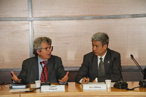 ,促进交流。意大利著明罗马法学家Sandro Schipani 教授致辞欢迎代表团到罗马参加研讨会并预祝取得成功。