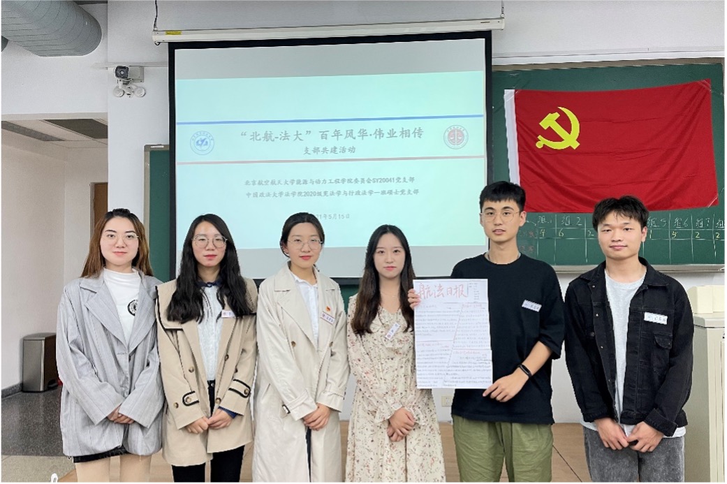 2020级宪法学与行政法学一班硕士党支部与北京航空航天大学能源与动力工程学院委员会SY20041党支部于2021年5月15日在北京航空航天大学学院路校区联合开展支部共建活动,两校近50位党员与入党积极分子参加。