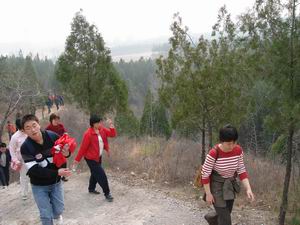 下午1点30分,登山队在昌平校区主楼下集结完毕,整装待发,向军都山开进。早春的山体绽放出了崭新的容颜,苍翠的松柏和嫩绿的新芽交相映衬,其间还点缀着新开苞的花朵,构成了一幅宽幅面、全景深的色彩丰富、层次错落的水彩画。队员们一路上相互扶持,携手并进,放声高歌。看着脚下雄伟的大山,听着头顶院旗在猎猎作响,口中唱出一支支昂扬的歌曲,胸中一股豪情油然而生——为奥运、为北京、为祖国——奋进!下午4点钟,登山队按照预定计划到达十三陵水库,乘车返回。