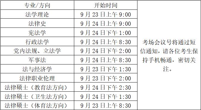 各专业复试报到于9月22日(周四)9:30开始,请所有考生提前20分钟进入报到预备会议室,腾讯会议号:110-604-149,我院将在预备会议上对复试报到、综合面试等工作进行部署。预备会议后请等待短信通知,分组进行报到、抽签和模拟演练等工作。