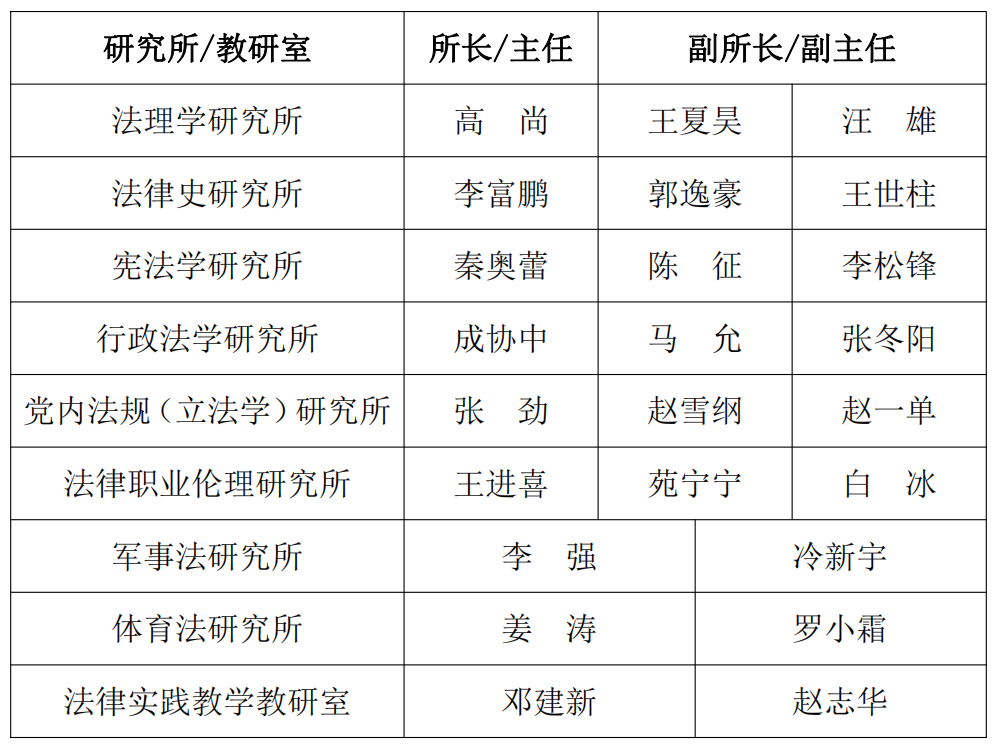 根据《黑料网 关于研究所(教研室)换届工作的通知》要求,经各研究所、教研室民主推荐与个人自荐、民主测评、学院党委会会议审议、党政联席会研究决定,现对研究所(教研室)换届结果予以公示:
