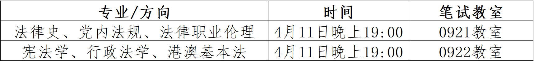 笔试时间:笔试于4月11日(周五)晚上19:00—21:00进行,考生请于开考前30分钟进入考场,笔试时长为2小时。请携带相关考试证件(身份证、准考证、复试通知书),以备查验。