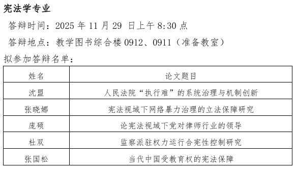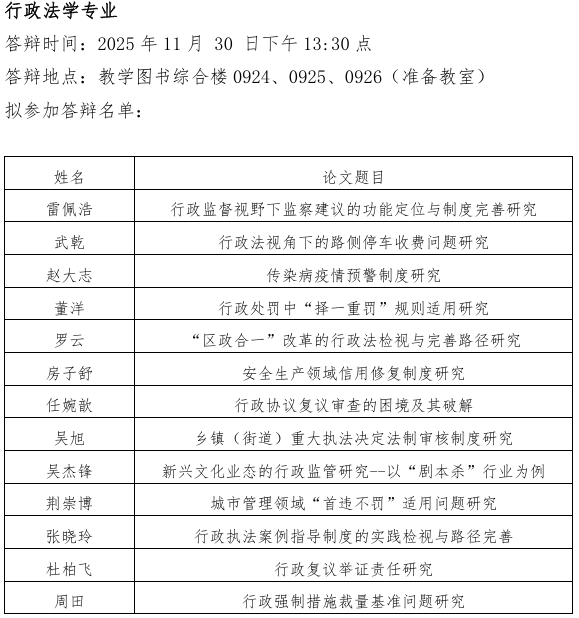 3.答辩安排如遇调整,将第一时间在本网站公布,请所有答辩申请人及时关注本网站通知。