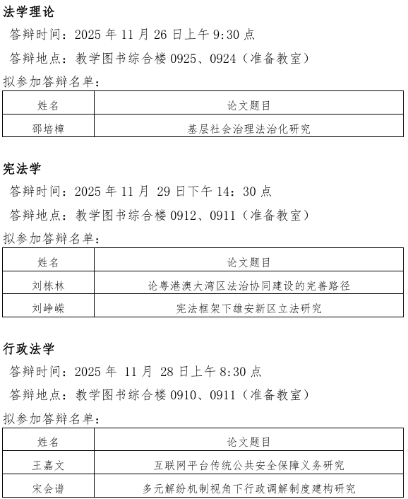 3.答辩安排如遇调整,将第一时间在本网站公布,请所有答辩申请人及时关注本网站通知。