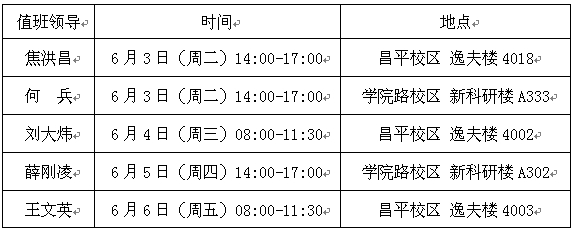 全院师生: 2014年6月3日至6月6日院领导接待日的具体安排通知如下: