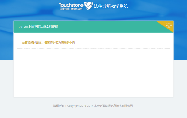 9、如果该生的报名信息“审核通过”,且“面试通过”,而老师此时暂时未为该生分配小组,登录后则显示以下页面。