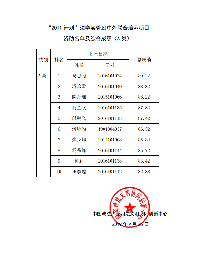 现将2019年“2011计划”法学实验班中外联合培养项目资助名单(A类)予以公示。公示期7天,如有异议,请联系黑料网 外事办。邮箱:[email protected]