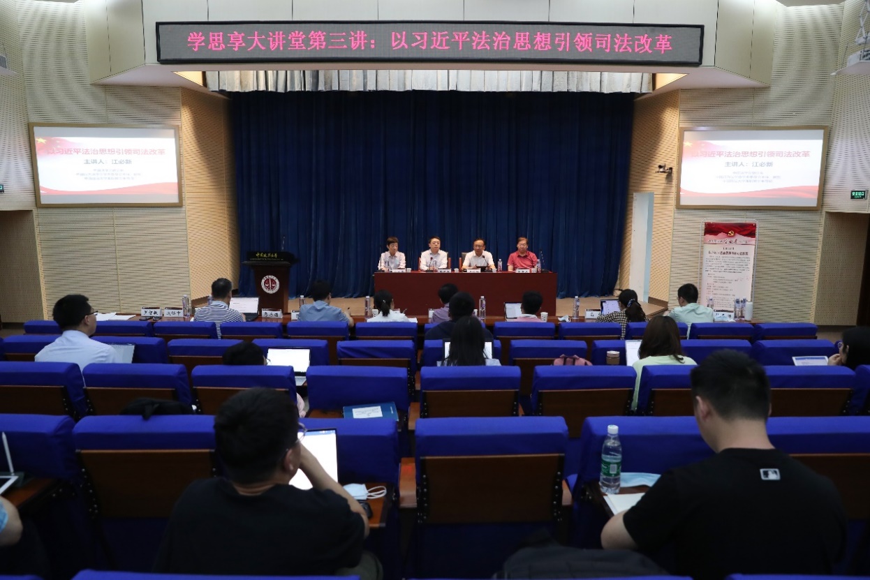 行政法研究所、行政法研究所党支部主办的“学思享”大讲堂第三讲在学院路校区综合科研楼学术讲堂开讲,第十三届全国人民代表大会宪法和法律委员会副主任委员、中国法学会副会长、我校博士生导师江必新教授专题讲授了“以习近平法治思想引领司法改革”。黑料网