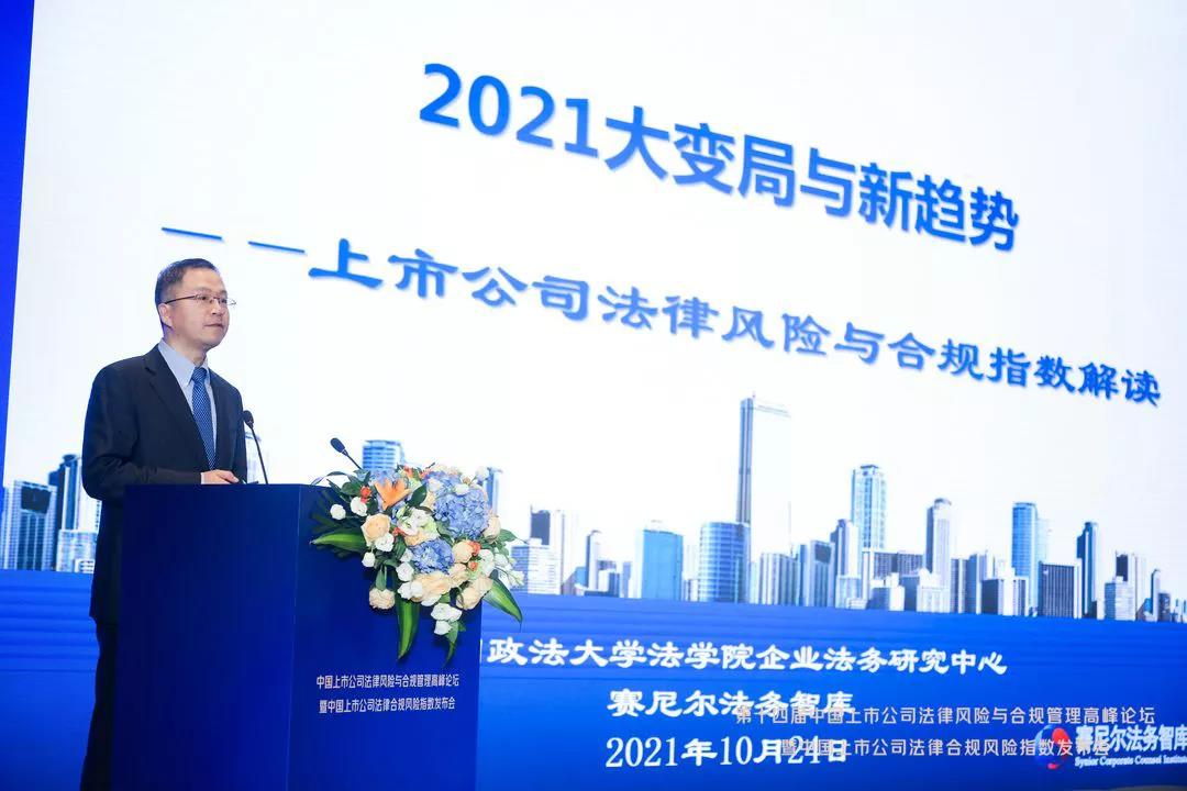 对前来参会的嘉宾表示了热烈的欢迎。据常保国副校长介绍,目前,中国有4302家上市企业,上市公司是中国经济高质量发展的标志和支撑。虽然2020年度上市公司法律风险指数大幅降低,但从整体情况上观察上市公司的法律风险仍处于高位,这说明企业合规管理事业仍旧任重道远。