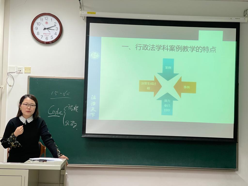 第二部分,马允老师以《行政法事例教学与案例教学的结合》为主题,进行了二十分钟的展示,在场老师均表示从中学到了许多能运用到自身课堂中的教学方法。