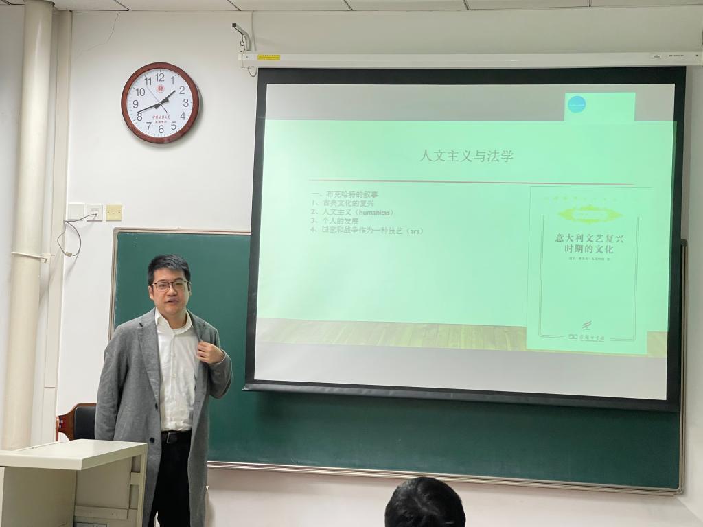 首先,郭逸豪以《西方法律思想第七讲——文艺复兴与近代早期的法律思想》为主题、沈伟伟以《网络法导论——网络规制四要素》为主题,分别进行了二十分钟的授课展示,两位老师使用了图文并茂的PPT讲解,深入浅出的阐释了抽象的概念和原理,并穿插了经典案例,展现了扎实的专业理论功底和学术造诣。