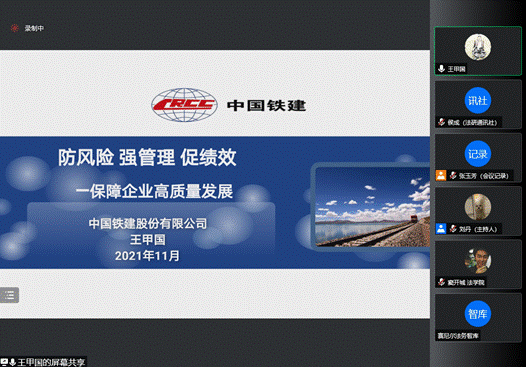 实务专家讲堂之企业法务高端课程第八讲“防风险 强管理 促绩效——保障企业高质量发展”在腾讯会议上举办,主讲人是中国铁建集团副总法律顾问兼法律合规部部长王甲国先生。
