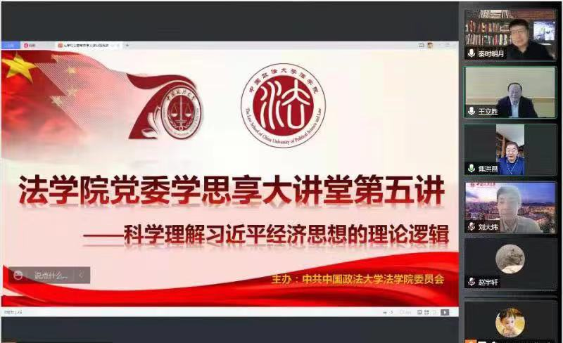 师生学习习近平新时代中国特色社会主义思想、拓展学习和教学科研视野将发挥积极作用。经济建设离不开法治建设,法学人才培养也离不开对习近平经济思想理论的学习。同时,刘大炜书记希望在当前严峻的疫情形势下,各个党支部要积极开展线上线下相结合的支部活动,发挥党支部的战斗堡垒作用与党员干部的先锋模范作用,为助力抗疫和法治建设做出应有贡献。