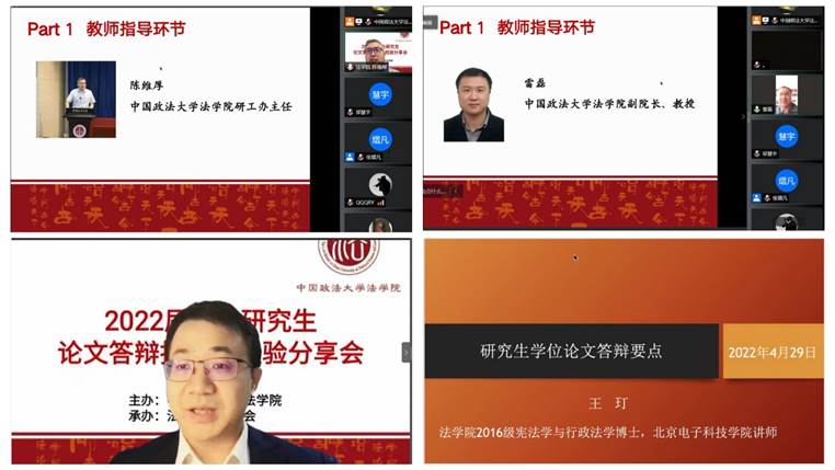 同学们都表示,“这次线上答辩组织有序,有条不紊,各位老师和答辩秘书配合良好,使我们得以顺利完成答辩。”功夫不负苦心人,在全体工作人员的通力合作下,本次答辩给师生带来了较好的体验与感受,也收获了诸多肯定,答辩同学纷纷表示感谢。军事法方向毕业生王伟栋同学在答辩顺利结束后感慨到:“在这样一个特别的情况下完成了线上答辩,算是给自己的硕士生涯画上了一个兵荒马乱又笃定圆满的句号。这是对我毕业论文和三年研究生生涯的答辩,也可能是离开母校前最后一次坐在老师们的课堂上。感谢学校和师弟师妹的筹备,让我在紧张的答辩情绪中多了一份安心,感谢老师们的提问和指正,更感谢我导一直以来的教导,在往后的学术和从业生涯里,我会一直抱有对法律问题的严谨求真精神,提高问题意识,紧跟法律前沿热点,定不忝列门墙。”