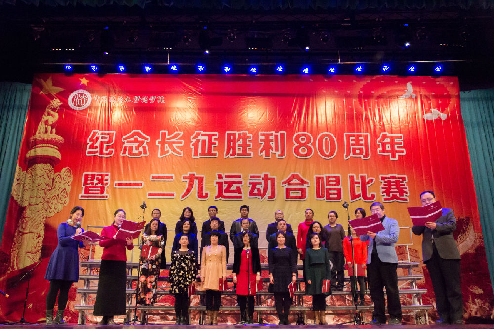 分党委在昌平校区礼堂隆重举办“颂歌献给党”——纪念长征胜利80周年暨一二·九运动合唱比赛,将一首首颂歌献给党,献给一位位心系全中国人民福祉的革命先烈。来自学院各年级共16只学生合唱队伍参加比赛,2只学生舞蹈队伍及学院教师队伍友情出演。
