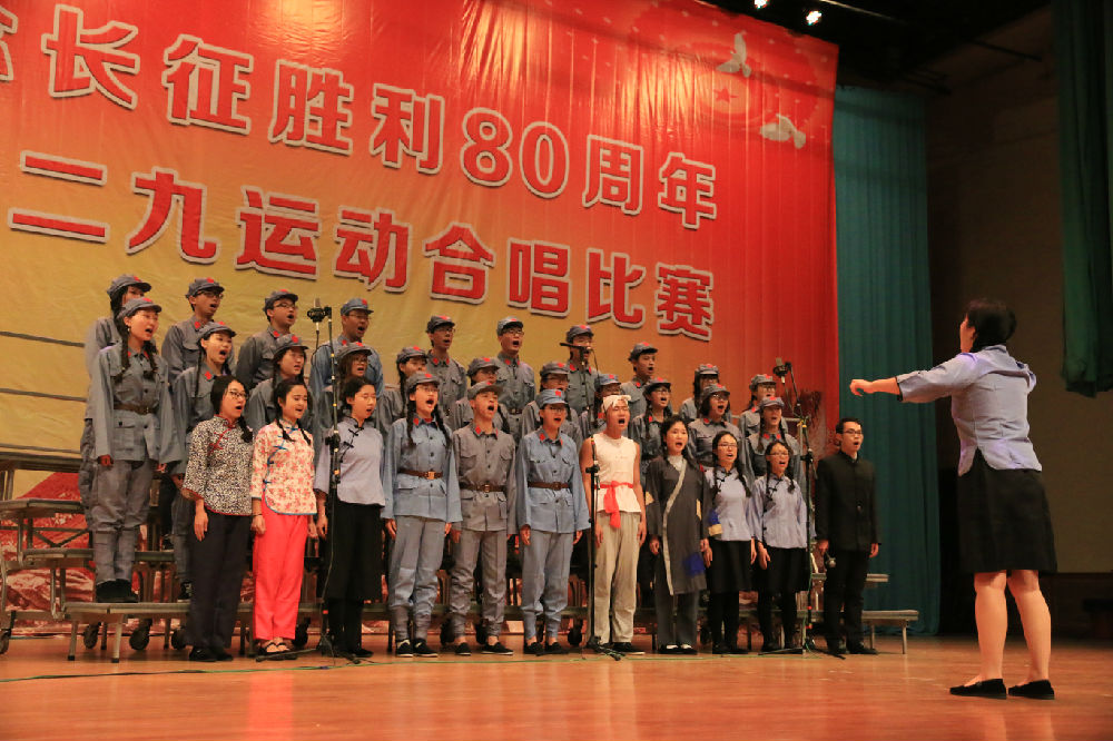 师生以合唱的形式弘扬红色传统,传承红色基因,感受先烈们不怕牺牲、百折不挠的精神。这种精神,穿越历史,辉映未来。在新的长征路上,我们更要继承革命先烈英勇顽强的拼搏精神,坚定理想信念,肩负历史责任,为了理想而斗争,在实现“两个一百年”奋斗目标、实现中华民族伟大复兴中国梦、新的长征路上贡献出自己的力量。