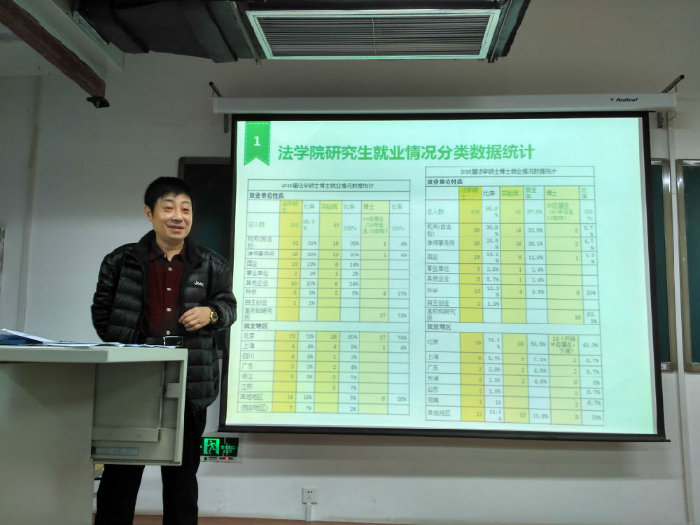 前期进行的2017届毕业研究生就业问卷调查结果和他多年对毕业生就业去向以及毕业生职业发展的研究,就毕业生在求职时优先考虑的因素为2017届毕业生做了非常专业的指导。王琦老师从简历制作和求职面试、就业手续办理等五个方面为毕业生做了详细讲解。研工办负责毕业生的辅导员刘澍和王家启老师也为同学们做了关于就业情况的介绍和求职技能指导。