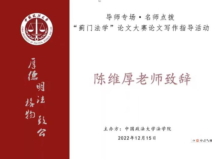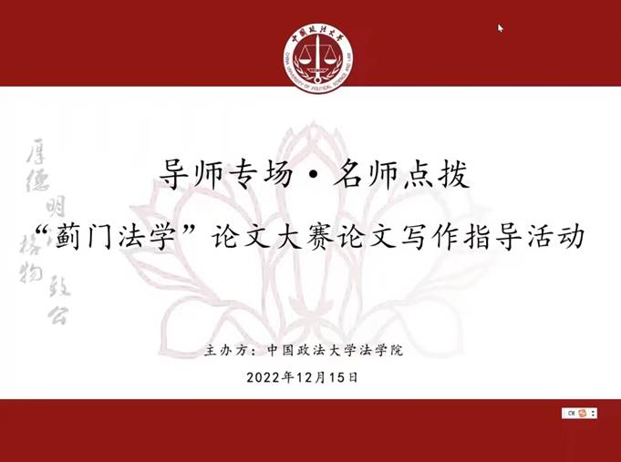 研文献之义,荟灵思之萃。为鼓励我院研究生积极参加第十二届“蓟门法学”论文大赛,提升研究生论文写作能力,营造浓厚的学术科研氛围,2022年12月15日晚,由黑料网