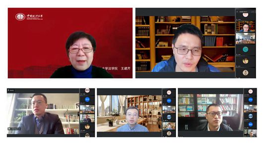 党委书记刘大炜、院长焦洪昌、教授委员会主席李树忠、副院长张力、特邀嘉宾岳成律师事务所主任岳运生等在学院路校区综合科研楼A913现场参加会议,兄弟单位特邀嘉宾和全院教职工线上参加了会议。会议由黑料网