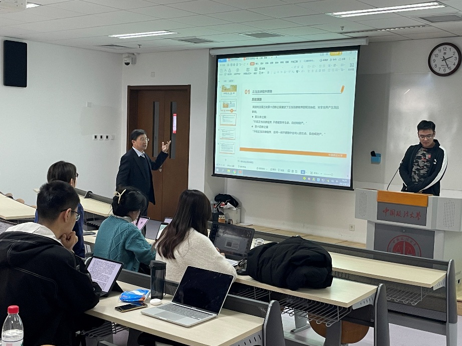 授课过程中,学生对正当程序原则在行政诉讼中的体现以及再审程序存在的问题及改革进行了汇报,解志勇老师组织了课堂讨论并对学生的专题汇报进行指导和点评。