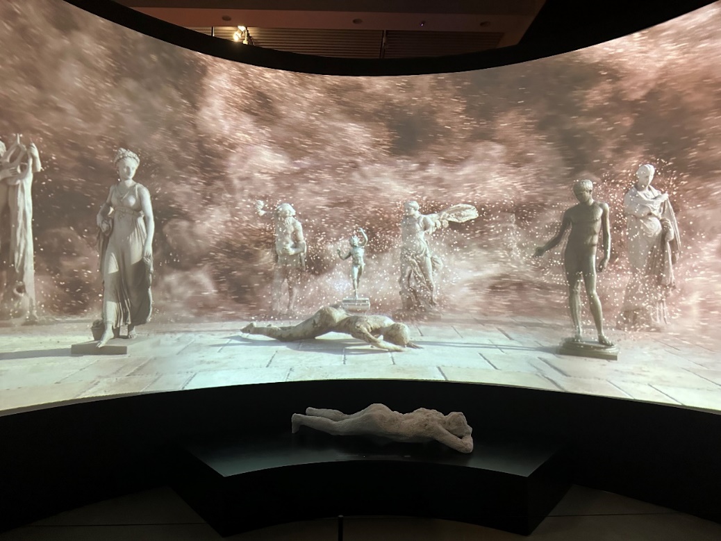 参观伊始,师生进入第一展厅。郭逸豪老师为大家讲述了庞贝古城的兴衰历史。庞贝古城兴起于约公元前8世纪,于公元79年毁于维苏威火山爆发。1748年开始的考古发掘使得庞贝城逐渐重现人间,并成为举世瞩目的重大发现。