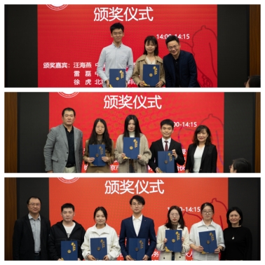 院长雷磊教授、北京市首信律师事务所管理合伙人徐虎律师、北京市首信律师事务所管理合伙人刘燕律师为到场的十名获奖学生颁发荣誉证书。