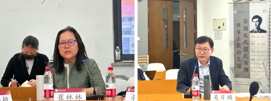 在郑肯植老师发言完毕后,与会老师进行了交流讨论。崔林林老师感谢了郑肯植老师的精彩发言,认为韩国法制史是中国许多学者的知识盲点,郑教授的梳理全面、精细,对近代韩国立法的自主性等固有知识进行了修正,并邀请与谈老师进行发言、提问。李超老师对近代韩国法依旧保存传统法内容的原因及删除“戏杀”条文对过失杀人相关规定的影响提问,郑老师对提出的问题进行了回应。
