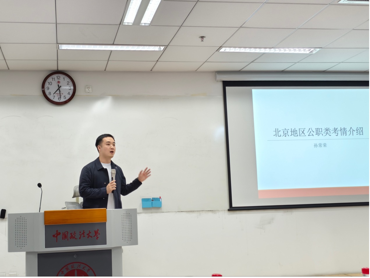 李宇迪向同学们分享了国考、省考以及国企面试中的备考经验,在向大家介绍备考期间的时间安排、用人单位招聘信息获取、面试技巧等经验的基础上,他还与大家深入探讨了求职心态的调整这一重要问题,提醒同学们要有“但行好事,莫问前程”的精神,不要轻易被外界因素所影响。