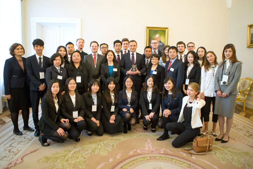 与波兰华沙大学学生就中波两国的法律、投资、金融等问题进行共同学习与探讨。5月19日中午,论坛一行人接受波兰总统安杰伊?杜达的邀请,前往波兰总统府会见总统。