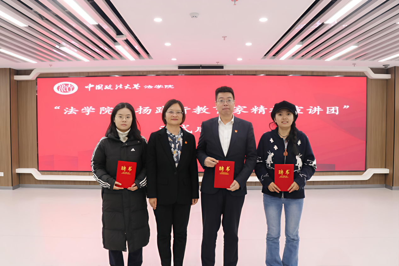 关于成立宣讲团的决定,聘任张京凯为弘扬践行教育家精神宣讲团顾问,法律史博士生赵佳菡等为宣讲团成员,王文英为宣讲团成员代表颁发聘书。