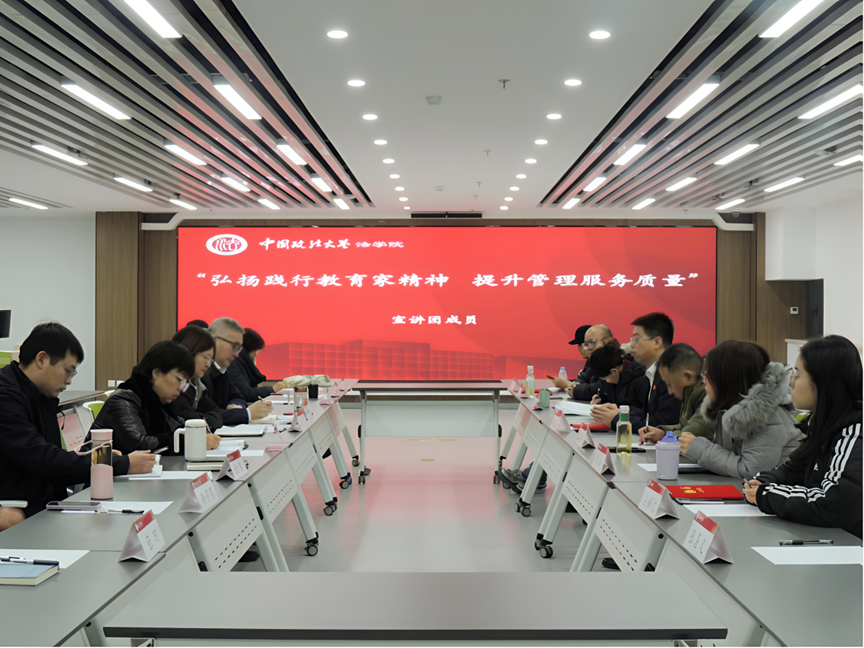 学工、行政支部教师党员和研究生骨干围绕弘扬践行教育家精神,提升管理服务质量进行学习研讨。孟祥滨结合自己的研究生经历,表达对张先生为人、为学、为师的敬意。郭虹强调师生紧密联系的重要性,表示要在细微之处关爱学生,用心开展沟通工作。张珂以张先生的教育实践为行动指南,承诺尽责尽职,做好学生工作。孙毅将教育精神与师德师风建设要求相联系,分享自己的感想。王家启深受张先生感人事迹的激励,认为一生专注于一件事,并要做好这件事,需要不断学习和努力工作。樊昌茂将张先生比作“看得见的哲理”,从课堂内外和日常生活中思考如何成为一名好老师。曾蓉表示要学习张先生优良的学风、家风和校风,以他为榜样,潜移默化地影响学生。管晓立从法律史专业的师徒关系出发,分享对教育家精神的理解。刘彦君则从理想信念、教育观念和教育实践三个维度,分享个人心得体会。