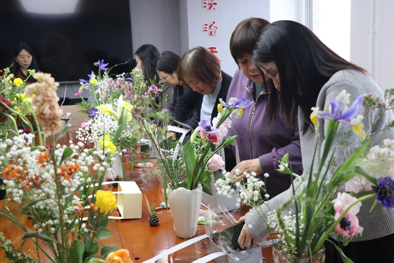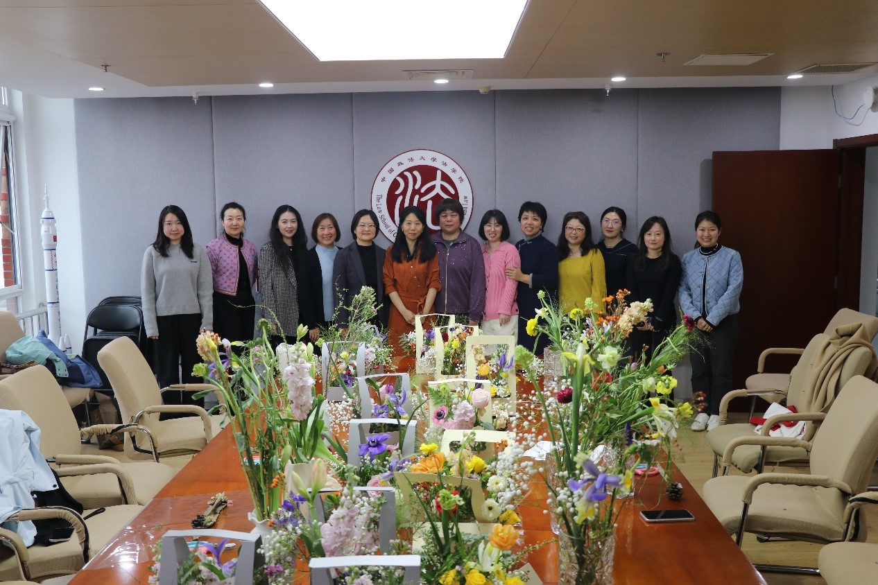 工会举办妇女节女教师花艺培训节日活动,以花为媒,共度佳节。活动特邀学校植物协会负责人武焰老师进行现场指导。