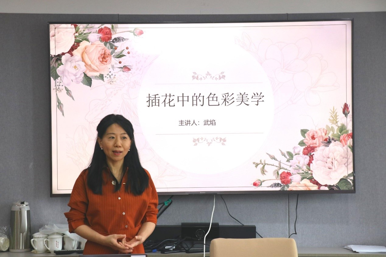 校植物协会负责人武焰老师带来“插花中的色彩美学”主题讲解,指导教职工们亲自体验花卉艺术。她从花卉知识与色彩分类原则等方面展开介绍,深入浅出,平实易懂。