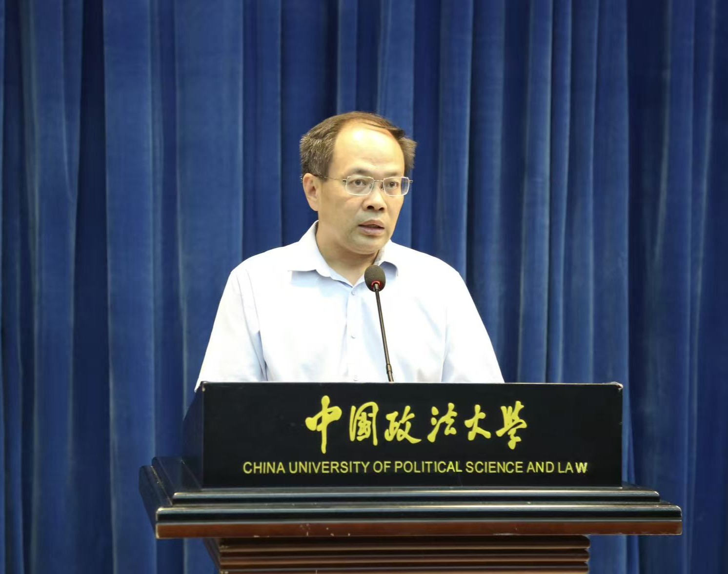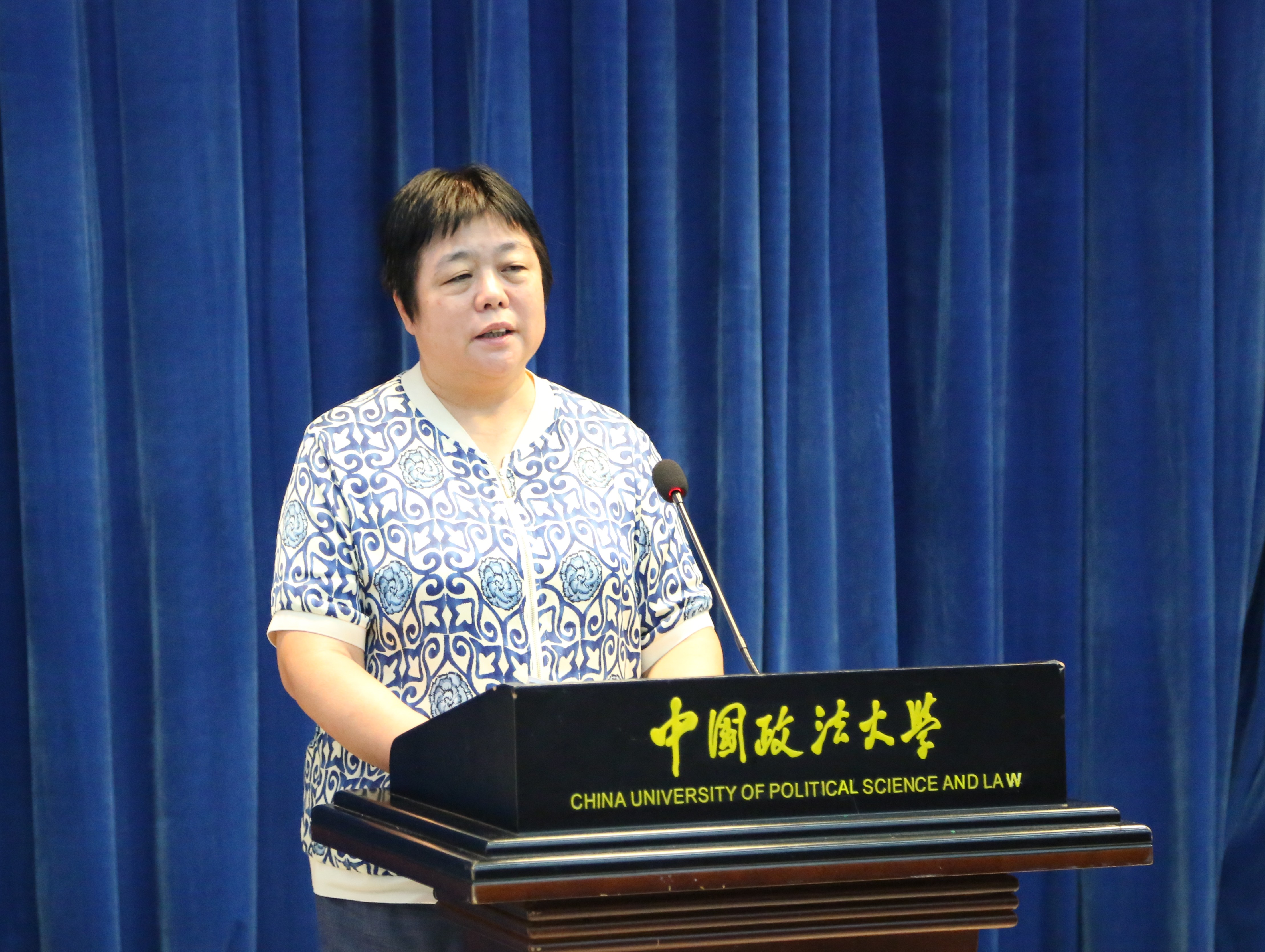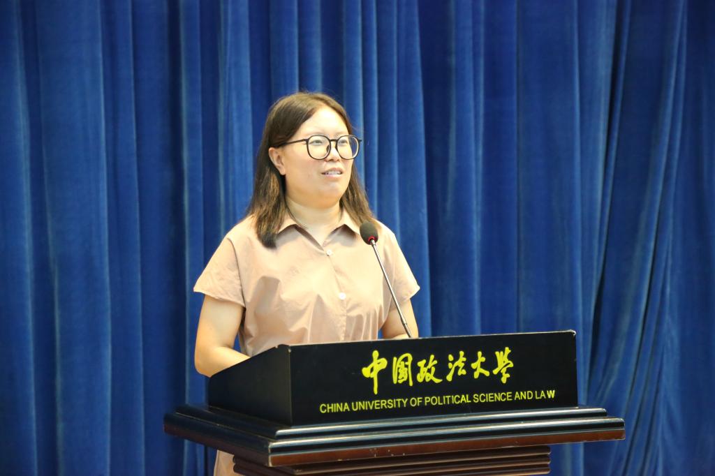 杨明荃介绍研究生学生工作。她勉励新生厚植家国情怀,勇担时代重任,高标准要求自己,积极参与法治建设实践,为国家与社会做出贡献。同时,她希望新生尽快适应新环境、新气候与新规则,与同学和导师融洽相处并建立良好的沟通。此外,她鼓励新生通过参加各类活动提升综合能力,尽早明确职业规划,度过充实而有意义的研究生阶段。