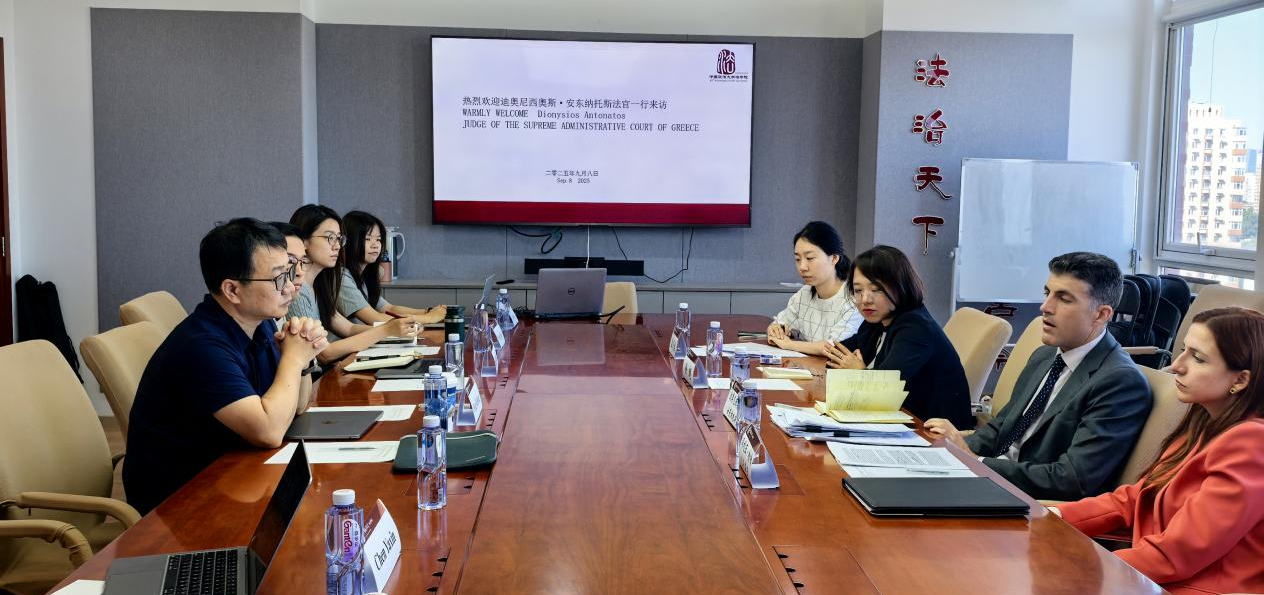 成协中教授首先对迪奥尼西奥斯·安东纳托斯法官一行来访表示热烈欢迎,并简要介绍了我国行政法的体系和我校行政法人才培养的基本情况。安东纳托斯法官简要介绍了希腊行政法院体系和希腊最高行政法院的组织、职能、案件审理等情况。随后,双方围绕希腊行政法的体系结构、希腊最高行政法院的合宪性审查职能、行政法院受理案件的主要类型,行政案件审理中的软法运用、平衡公共利益与个人利益的具体机制等问题,展开了坦诚和深入的交流。座谈结束后,双方也共同表达了进一步加强学术交流的期待。