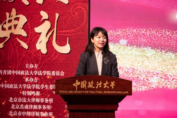 李蕾为先进班集体颁奖。他们团结互助、追求卓越,在学风建设与集体活动中凝心聚力,以共同成长书写班级篇章,展现了法大班集体昂扬向上的精神气象。
