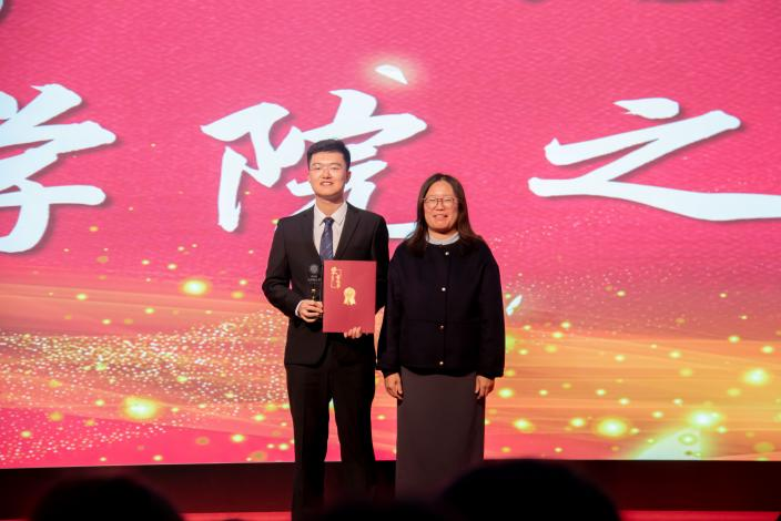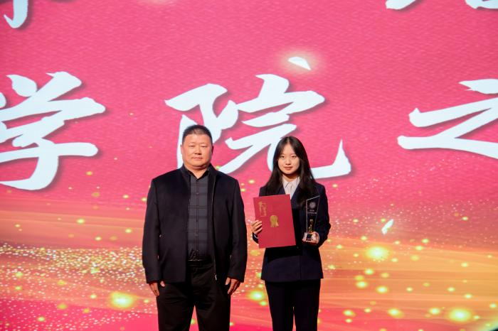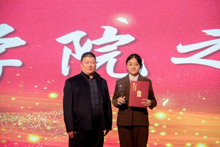 孟祥滨为优秀学生干部代表颁奖。他们在服务同学中践行责任,于统筹协调中彰显担当,以热忱与智慧搭建师生沟通的桥梁,用实际行动诠释了“奉献、成长、引领”的青春力量。