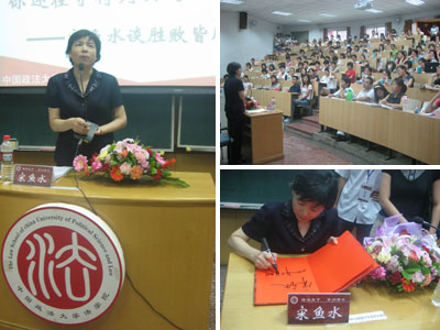 昌平校区阶二教室准时开始。本次活动邀请到的嘉宾是海淀区法院知识产权厅厅长宋鱼水法官,在一片掌声中,宋法官款款走入现场,随之,讲座正式开始。