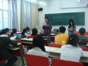 05级9班党支部在端升楼101教室召开了党内民主生活会,各位党员同学以科学发展观为指导,认真开展批评与自我批评。