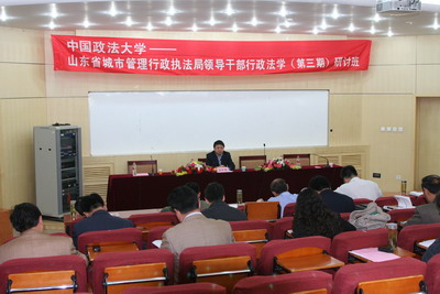 周建青同志在接下来的讲话中代表山东省人民政府法制办公室对我院的精心组织和安排表示感谢。他说,自己已在多个场合多次聆听过我校学者富于思想和智慧的讲课,这次能够来到法大更近距离的接触这么多优秀的师资是学员们的荣幸,希望学员们积极将实践与理论联系起来,不断充实自己,为山东省城市管理法治建设作出贡献。