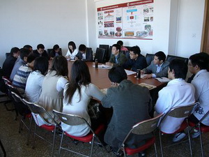 学委会主任委员韩萌萌介绍了学委会的主要职能和具体工作,从而使出席活动的老师详细了解了我院学生组织的基本情况。随后,05级辅导员管晓立结合毕业生就业情况,针对学生会工作提出了两个问题:第一,学生会如何更好地开展工作,帮助提高学生考研、出国留学、司法考试、毕业就业的成功率;第二,学生会的成员在开展各方面工作时,自身能力是否得到充分发展。他指出,学生会的绝大部分工作,其实质是服务于学院学生的成长成才,提高学生的能力和综合素质,因此必须明确发展目标,把各项具体工作落到实处。其他与会学生干部和老师也就如何贯彻落实科学发展观展开讨论,并提出了自己的看法。