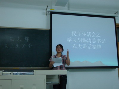 2005级4班党支部召开民主生活会,深入学习胡总书记5月2日在中国农业大学的讲话精神。通过这次学习,毕业生党员们进一步提高了思想认识、端正了思想态度。