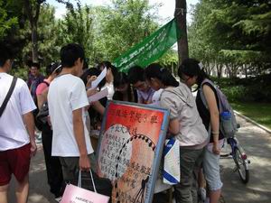 3班首先承办的毕业大派送活动,在昌平校区法制广场旁的跳蚤市场如火如荼地展开了。此次活动不同于以往的毕业生捐物行为,其新颖之处有三点:一是05级法3以班集体为单位组织此次派送活动,集体多维宣传、集体现场预约、集体后期宣传,这在我校尚属首次;二是同学们将自己大量欲捐物品登记造册并以分类菜单形式展示,供现场来往同学挑选,提高了赠予活动的效率;三是四年法律知识的活学活用,本着无尽其用、杜绝浪费的原则,现场签订即时交付赠予合同或附期限赠与合同;四是对于现场未派送出去的物品以及后续增添的,还会将之整理成电子版派送清单发到我校BBS论坛上,方便赠予双方通过网络进行联系。