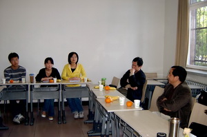 当天下午,法理学研究所党支部的舒国滢、白晟、王夏昊等老师又与06级、07级和08级法理专业部分研究生党员就深入学习实践科学发展观与师德、学风建设及硕士生学习、科研、就业等问题进行了广泛、深入地探讨。